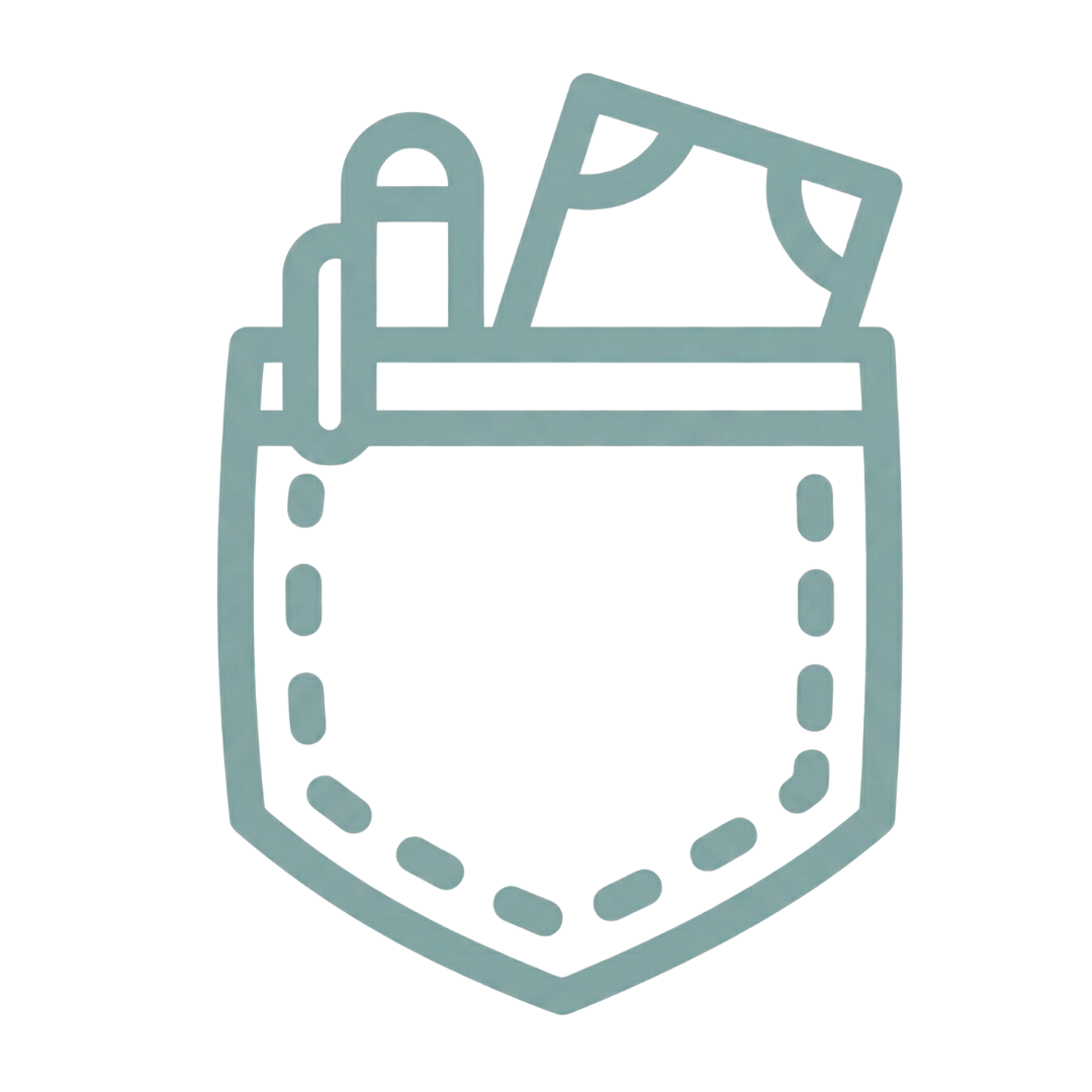 Elastic loops for pens, lip balm & makeup. Secured and easy to find.